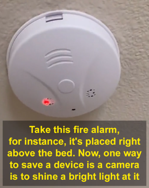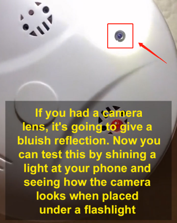 “就比如这个烟雾报警器,它正对的地方就是住户的床。咱们不需要用额外的设备,用手机的闪光灯直射检查,就能发现上面是否带有针孔摄像头”