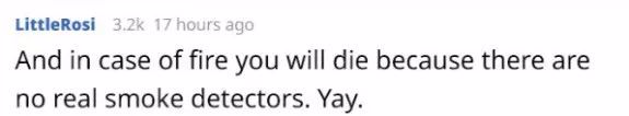 “得,万一房里起火我肯定就烧死在里面了——烟雾报警器都是假的,好耶~”