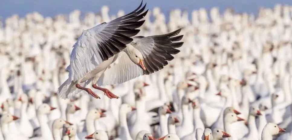 整个十月,在魁北克的Cap Tourmente国家野生动物保护区,在秋季迁徙到来之前,你可以看到成群的雪雁栖息在圣劳伦斯河的岸边。