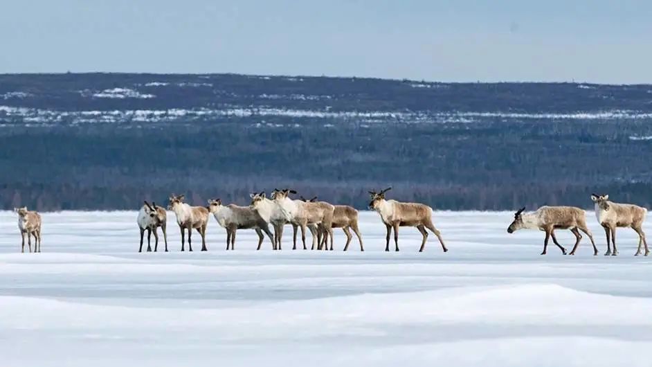 每年九月,350,000头强壮的 Quamirjuaq 驯鹿都会从它们在北极的觅食地向南迁徙。