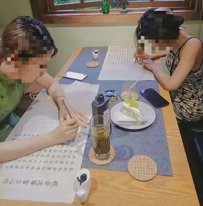 佛媛们下午要展示的内容就很多了,如去茶屋喝茶拍照看夕阳、抄写经书、临摹字帖,“梵音绕梁,檀香入鼻,数日过后一切皆空”。