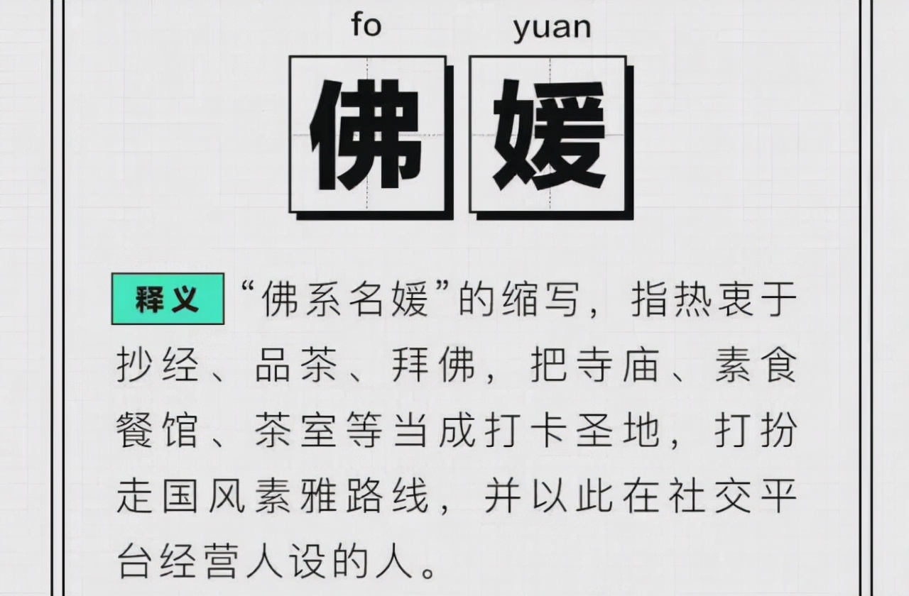 佛媛指的是那些喜欢在社交平台上晒手抄经书,在寺庙里摆拍,在朋友圈晒品茶,焚香,禅修的一类网红。