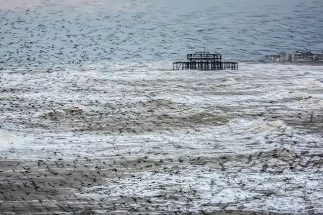 Matthew Cattell赢得了年度景观摄影师奖项,作品展示了布莱顿东苏塞克斯废弃的西码头,大量椋鸟旋转的惊人场景。“大群鸟在这里聚集。我喜欢的运动的景象而非静止的,并且我可以用长曝光夸大这个漩涡运动。”这个比赛持续了十年,目的是评选英国最美丽的和引人注目的景观以及国家最好的业余和专业摄影师。