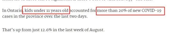 在过去2天之内,安大略省新增确诊病例中,11岁以下儿童占了20%以上;