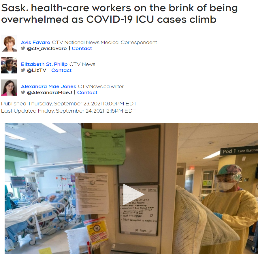在这一波疫情中,萨斯喀彻温省的疫情也引起了卫生官员的注意,萨省是全国疫苗接种率最低的地区之一。