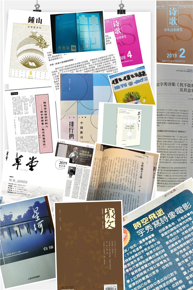 耶鲁大学高级讲师、旅美作家苏炜引用哈罗德•布鲁姆有关“伟大诗篇的必然性”的论述,表达了他阅读宇秀诗的感受:“ 一是殊异。她陌生化和陌生感的语言表述给她的每首诗都创造出一个特殊的诗境。二是省略,剔除,留白。如同作曲家所言:作曲并不难,但剔除多余音符却是极为困难的。此两点,也许就是宇秀诗让我感受到的那个语言表达的 ‘必然性’ 吧。”
