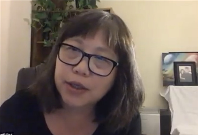 对于诗人和在诗行里的浪漫,宇秀也做了她自己独特的解读,她认为在这一点上,诗人与小说家很不同,小说家是让读者在他们创造的悲剧故事里和悲剧人物身上,唏嘘洒泪;而诗人则往往奋不顾身自己就做了那悲剧的主角。这也是诗人的一种宿命所在。关于诗的永恒性,宇秀认为主要基于两点:一是人类对理想的向往与追求;二是人类的情感,尤其是爱情、亲情是诗的永恒主题。她以十多年前以英文原创,而后自译为中文的一首《妈妈》,作为本演讲主题的延伸与结束语,于是就出现了本文开头的一幕。这首被著名国际诗人痖弦先生称之为“非常感人的伦理诗”,打破了一般母爱题材的歌咏套路,深切地揭示了母女至亲两代人的爱与痛,在反转中确立女儿的自我意识,震撼人心。而讲座当天正巧是诗人母亲的生日,主办方在毫不知情下的安排,似冥冥之中的天意,给了疫情中不能回家的宇秀借此机会,在云端向罹患老年痴呆症的母亲呼唤和祝福,尽管母亲的记忆里早已不存在这个女儿。诗人的感人肺腑的诗句,令全场动容,包括主持人在内的全球各地观众在自己的一隅都禁不住潸然泪下。