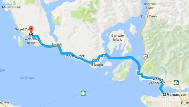半月湾位于BC省的阳光海岸,距离温哥华81公里车程。中途需从西温的BC 轮渡码头坐船到Gibson码头,再驱车前往Halfmoon Bay。