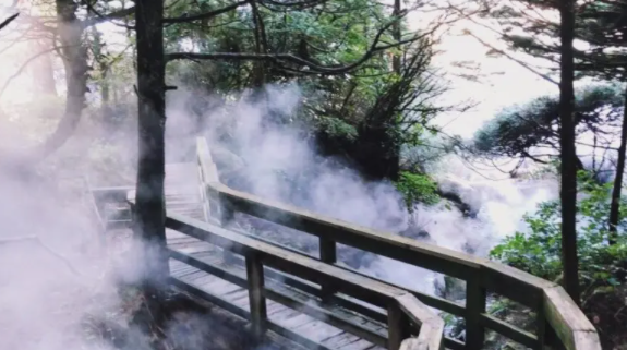 而秋季最适合的游玩项目就是泡温泉了!从Tofino坐快艇到hot springs cove大概1个多小时,穿越一片原始森林,走过刻着字的木头台阶,你就能看到热气腾腾的温泉了!