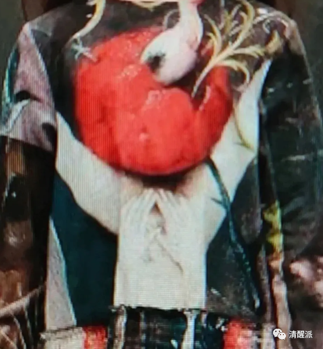 比如这件,女童装的右下角是一对互相抚摸的裸体男女,出自欧洲中世纪画作。