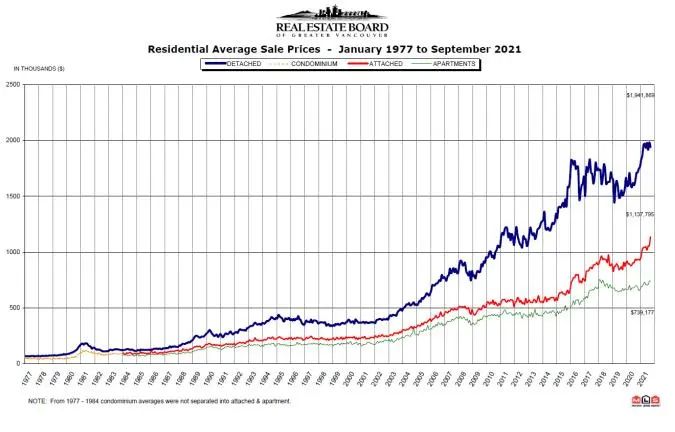 一般来说,确定一个市场是否买方、卖方、平衡状态要有至少3个月的数据支撑。温哥华地区的房地产市场目前已经全方位地处于“卖方市场”。去年6月份的市场总销存量比(当月的成交总量与市场的房源总量之比)已经达到了21.4%,7月份更是达到了25.9%,8月份略有下滑,但还是高达23.8%,9月份这个比值在跳跃式增至27.8%,而10月份更是高达29.7%,11月份也还是维持在27.6%这样一个高位,12月份更是到达了非常罕见的36.2%的极限数值,2021年1月份也接近30%,到了2月份更是攀上了44.6%的历史高位之一,在3月份,市场的总销存量比居然达到了62.4%这样一个不可思议的数值,4月份虽然较3月份有所降低,却也达到了47.9,同样是历史高位之一,5月份稍有回落,依然在38.9%的高位,6月份虽有下滑,也还是维持在34.7%,7月份价格走平,但销存量比依然处在33.8%,8月份价格微升,销存量比还是处在35%这样一个高位,9月份价格普涨,销存量比当然也高悬其间,处于34.1%这样一个高值!