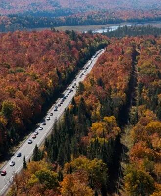 目前,阿冈昆公园的森林呈现出各种颜色,包括红色、橙色、黄色和绿色。