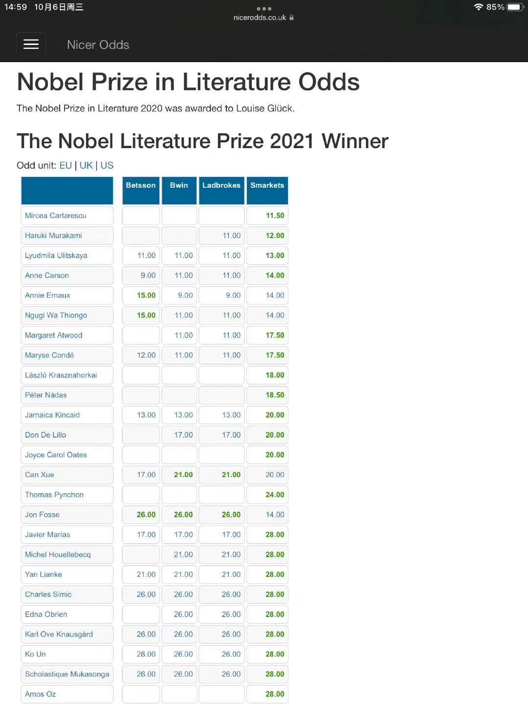 中国的几位作家又陪跑了一趟,尤其是呼声最高的残雪。