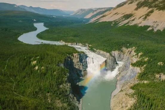 纳汉尼国家公园 (Nahanni National Park) 是全世界第一批世界遗产之一,迄今为止进入公园的方式只有划船或乘坐水上飞机。公园占地3万平方公里。公园以湍急的河流、幽深的峡谷、天公巧成的石柱和苔原覆盖的山巅蜚声世界。纳汉尼国家公园 (Nahanni National Park) 的另一个必达之处当属弗吉尼亚瀑布 (Virginia Falls),高约90米,相当于两个尼亚加拉大瀑布的高度。因为每年进入公园的人数受到严格的限制,且进入方式罕见,因此能够一睹弗吉尼亚瀑布 (Virginia Falls) 的真容成为了很多旅游爱好者的梦。