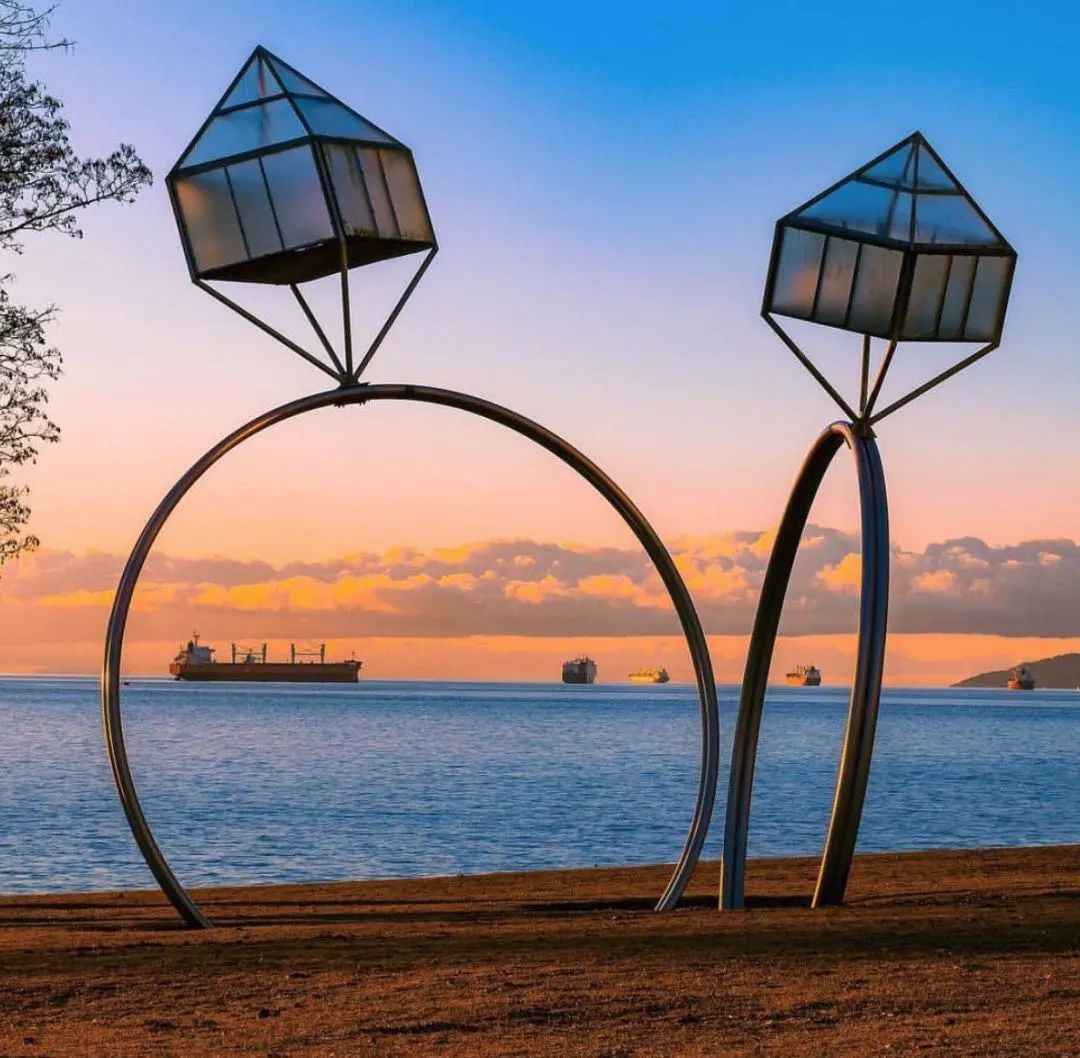 雕塑于2005年在日落海滩 (Sunset Beach) 上安装,展示了两个订婚钻戒,高近30英尺—这个是一定不要错过的浪漫去处。