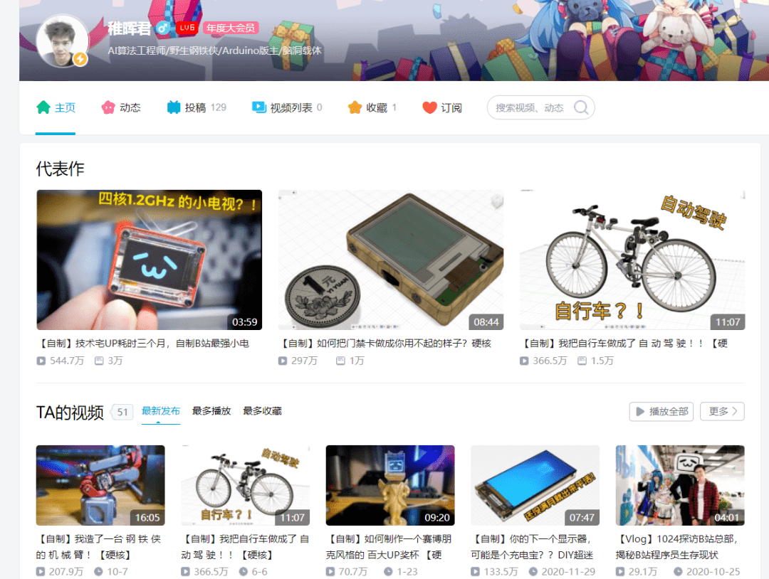 10月7日,B站博主“稚晖君”发布了《我造了一台钢铁侠的机械臂》。截至10月10日下午,该视频在B站播放量达276万次,在他微博上的播放量超过350万次。