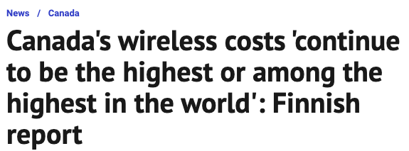 来到2021年,随着芬兰的一份专业报告的公布,也搬出了加拿大人为手机服务支付的费用高于其他任何国家的最新证据。