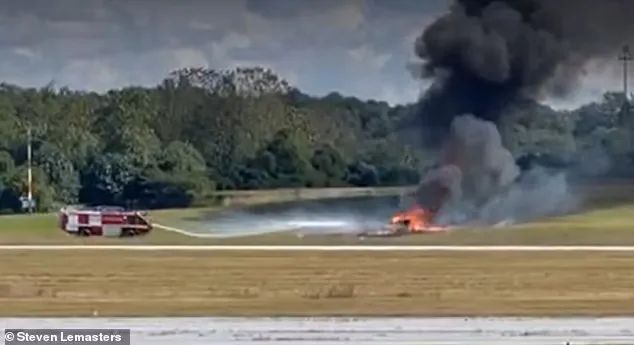 根据目击者称,当时他们看到一家飞机在跑道旁翻转最后倒栽在草上。