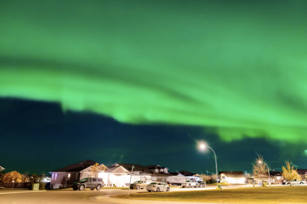 美丽的北极光横跨BC省和阿尔伯塔省的天空,紫色、粉红色、蓝绿色和绿色在肉眼所能看到的范围内舞动闪烁。甚至在美国的爱荷华州、明尼苏达州和俄亥俄州也能看到。