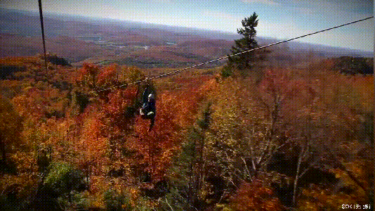 觉得缆车不够刺激的小伙伴还可以尝试一下在火红枫林中搭乘索道,在美到窒息的绚烂色彩中飞行。