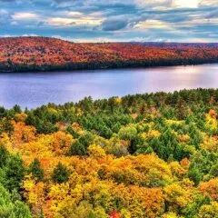 加拿大安大略省东南部的阿岗昆公园,位于多伦多的东南部,渥太华的西部,车程都是将近3小时,渥太华略近一些,都可以实现当天来回。公园网站内有枫叶预测和实时预报,可以实时关注方便行程的计划。点击这里查询