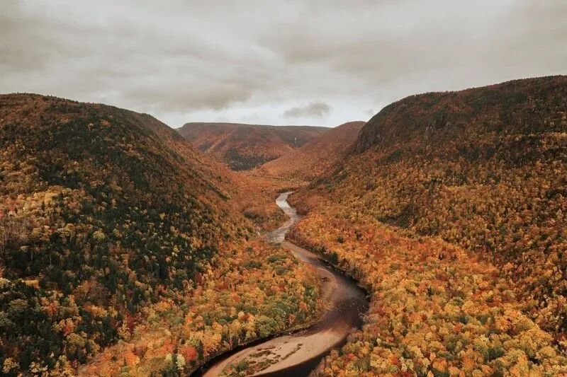 岛上最美的河流,被誉为全加拿大最好的鲑鱼垂钓地之一,拥有超过50个鲑鱼池。河流蜿蜒于山谷间,两侧在深秋时期遍布了金黄的秋叶,浸染了整个山涧,让人无法不感叹大自然的造物神奇。