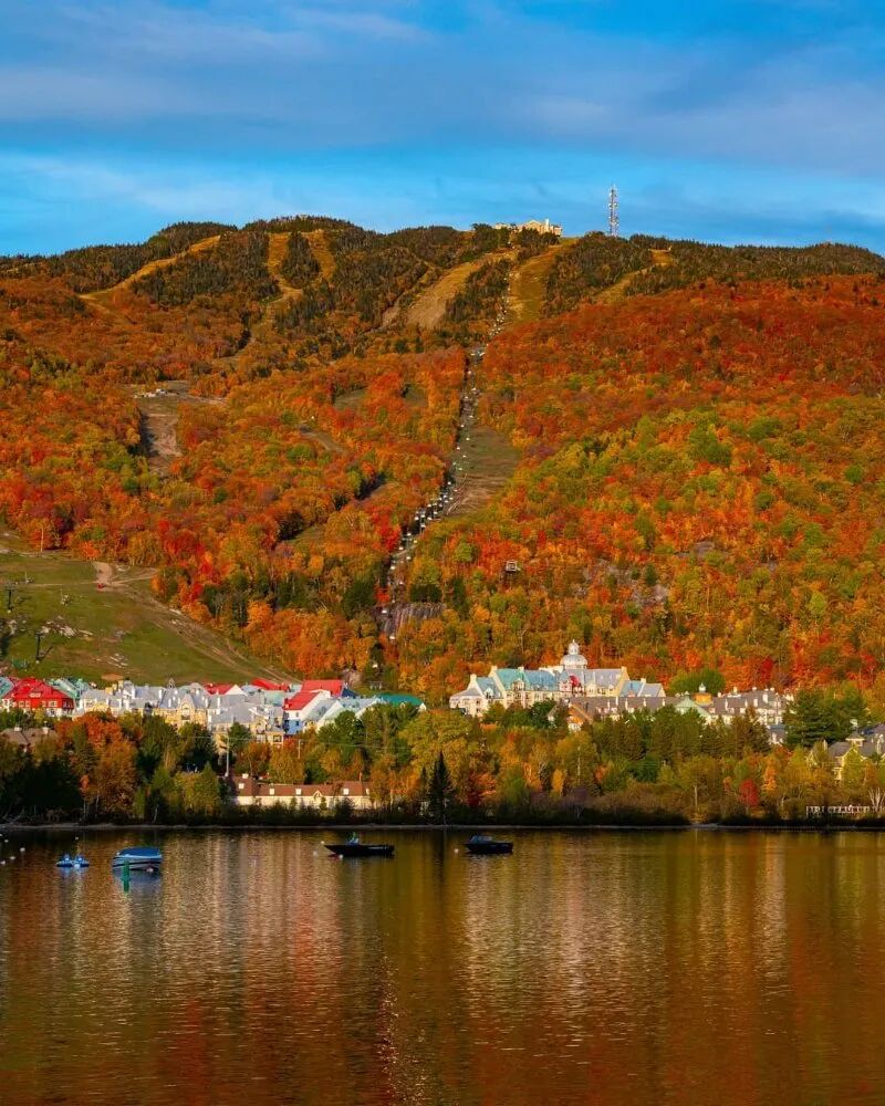 在公园的山脚下的翠湖山庄度假村(Mont Tremblant)也是一个景色绝美,四季可游的地方,春有花,夏游湖,秋赏叶,冬滑雪,除此之外每个季节都设有各种不同的娱乐活动,在秋日还设有缆车可以乘坐到山顶上赏枫。