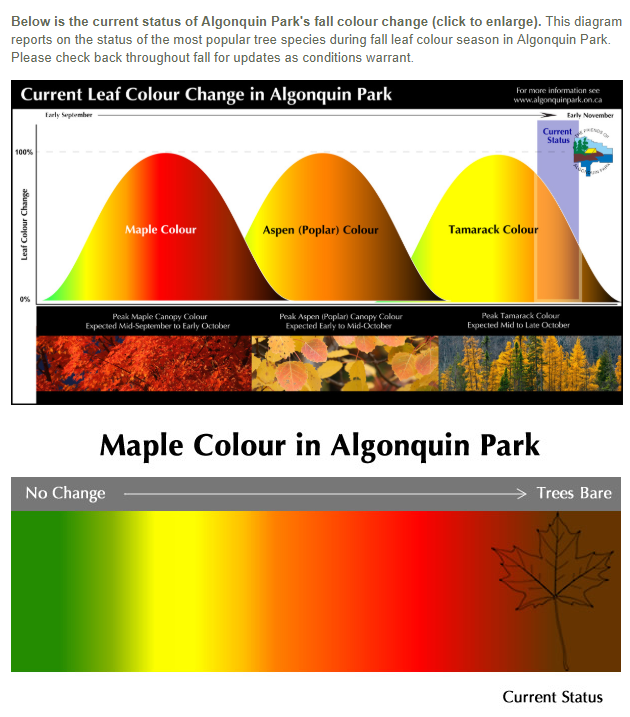 下面为安大略和魁北克地区的枫叶预测和报告网站,可以通过以下两个网站查询该地区的枫叶变化程度。