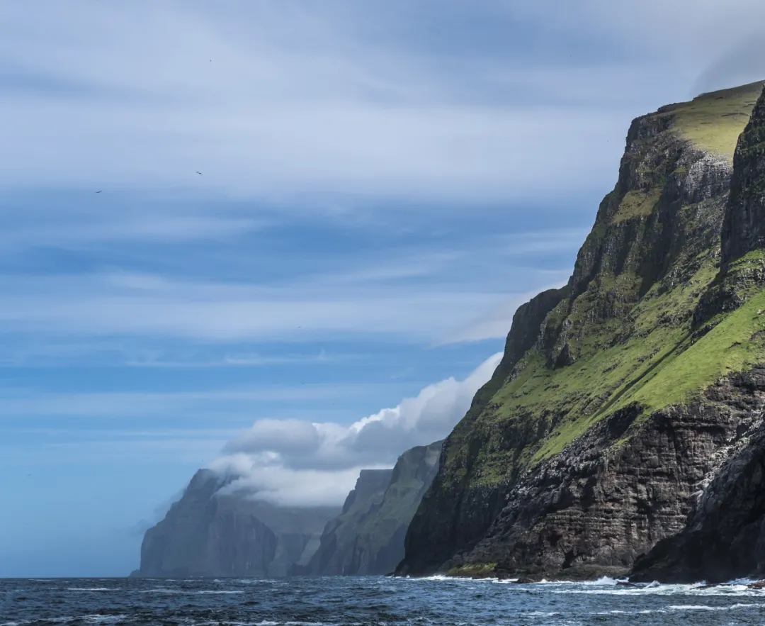 法罗群岛的自然美丽隐藏在城市之外。迷你袖珍的韦斯特曼纳(Vestmanna)与托尔斯港同在斯特莱默(Streymoy),你可以乘坐船只前往鼓舞人心的韦斯特曼纳鸟之崖(Vestmanna Bird Cliffs),颠簸地经过高耸的崖面,掠过锐利的岩石尖峰,再穿过狭窄的石拱。你会发现来到海鸠和海雀的哺育区,尖声鸣叫的管鼻鹱和三趾鸥像千万个白点一样直入云霄。