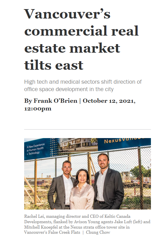 Avison Young在2021年中期的大温写字楼市场报告中表示:“我们可以预见的是,Broadway周边将会是未来几年,温哥华最热闹的区域,将会有9个大型项目,其中大部分位于东Broadway。”
