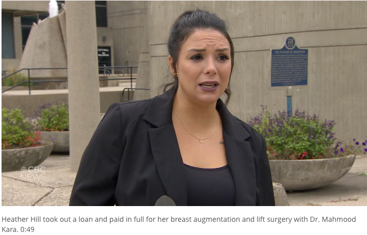 其中一名居住在安省Brantford市的希瑟·希尔(Heather Hill)约了卡拉医生做隆胸手术,希尔从一家贷款公司借了 jin 加元,该贷款公司直了全额支付了卡拉医生。