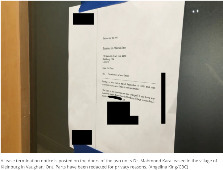 Kleinburg Village Center Inc. 于 9 月 23 日卡拉医生和 Dr. Kara Medicine Professional Corporation 提起民事诉讼,要求赔偿 664,608加元,指控他和他的公司违反了两项商业租约。根据索赔声明,Kara于8月签署了租用该大楼内的两个单元的租约,但在9月,由于不够钱,两份租金支票都退回了。