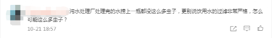 也有不少网友质疑产品是否是假货。有人表示,污水处理厂处理完的水捞上一瓶都没这么多虫子,过滤严格的饮用水怎么可能这么多虫子?