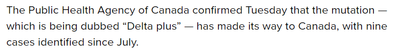 Global News的报道称,加拿大公共卫生局周二证实,这种新的突变已进入加拿大,自7月以来已确认了9例。