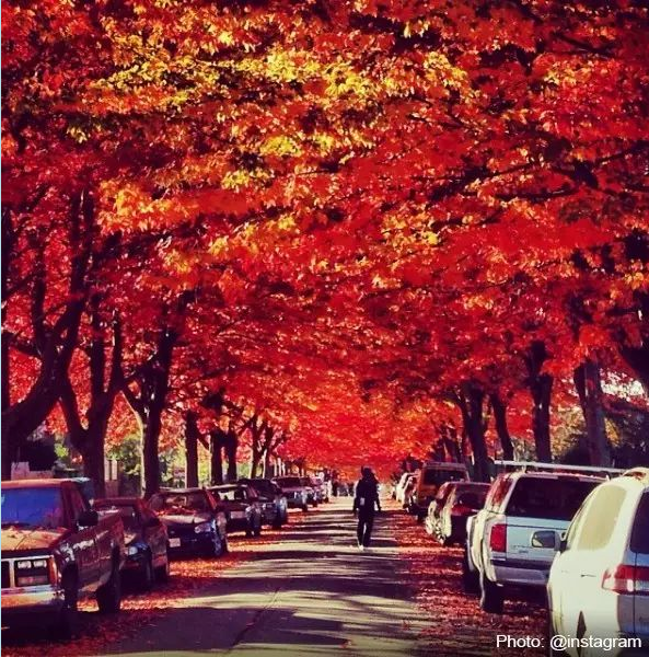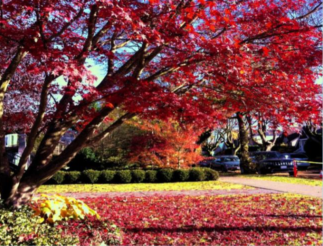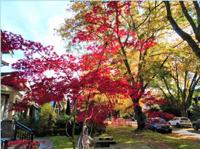 温哥华不仅春天到处花团锦簇,红花遍地,美不胜言,秋天也不遑多让。