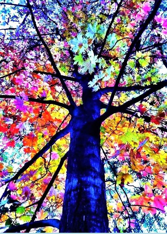 观赏枫叶最好在晴天,在树底下对着阳光向树顶看去,蓝天白云的背景下,五彩光芒四射,犹如教堂的玻璃窗上映出的神圣光采。