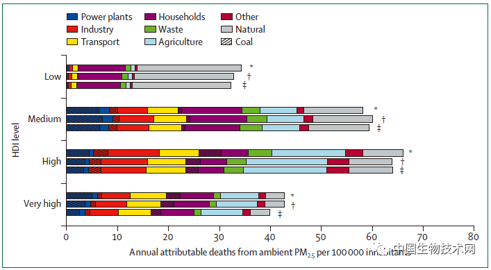 空气污染 2019年,来自细颗粒物的空气污染导致全球约330万人死亡,其中约三分之一来自煤炭、石油和天然气燃烧,这也是导致气候变化的原因之一。