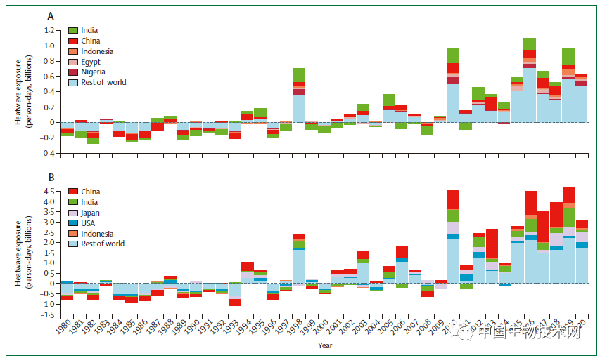 老年人和儿童去年遭受危险高温的时间更长。1岁以下儿童在2020年遭受热浪天数影响增加了6.26亿人日(person-day);对于65岁以上的老年人,与1986年至2005年的平均水平相比,这一人群遭受极端高温的人日增加了31亿。
