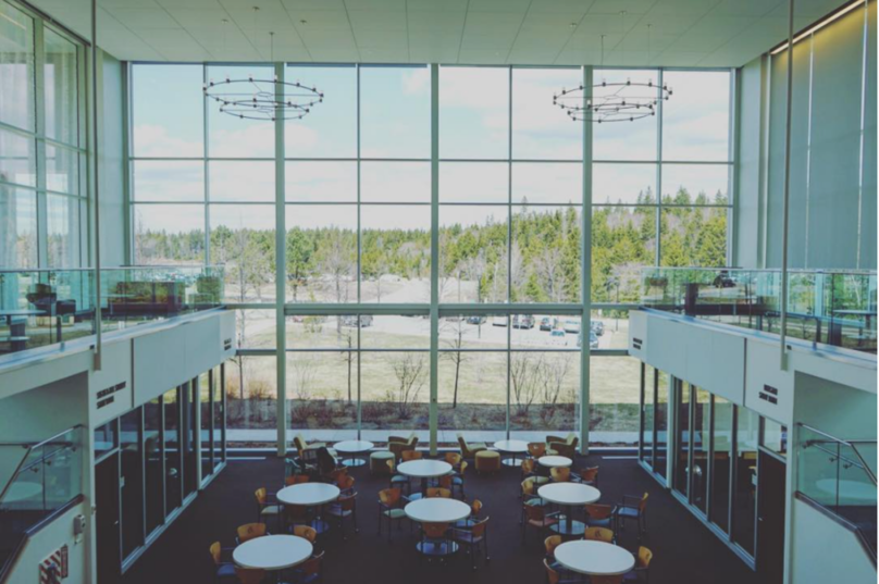 在新不伦瑞克大学内,坐落在原产于大西洋生态区的树木和植物景观中,如同一座灯塔。