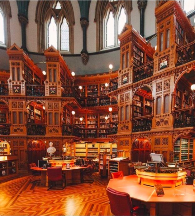 这座加拿大的标志建筑是10加元纸币的正面图案,由Thomas Fuller和Chilion Jones设计,灵感来自于大英博物馆的阅览室,通过一条走廊将中心大楼的主体分开。图书馆自1876年建成以来已进行了多次扩建和翻修。