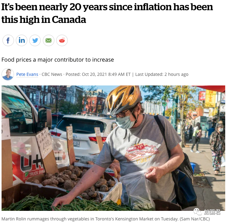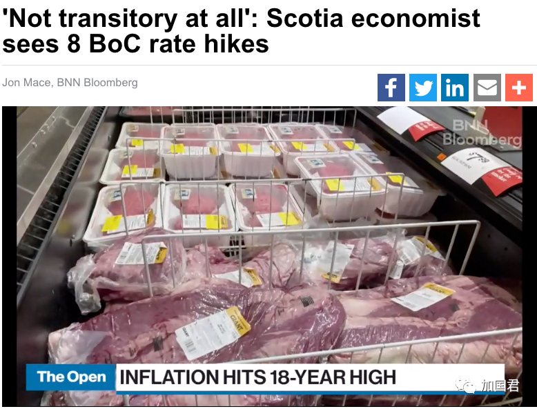 加拿大统计局今天公布9月份通胀率高达4.4%,超过8月份的4.1%,创下2003年以来近20年新高,由于央行认为通胀不是暂时性,并将会持续至2022年,丰业银行预测,到2023年前,央行将会加息8次,基准利率每次计息25个基准点,从目前0.25%加到2.25%,是2008年以来新高,如果真的这样,对楼市势必造成非常大的影响。