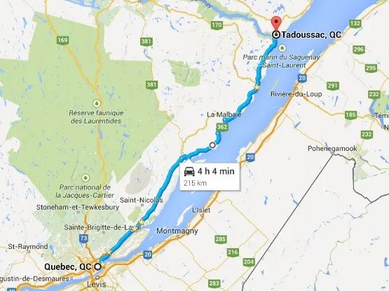 从蒙特利尔出发,沿40号高速经三河到魁北克,一路都是高速“枫”景,不值一提。真正的赏枫之路是从圣安妮大峡谷开始的。