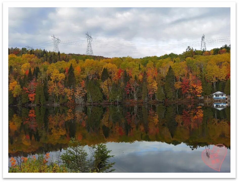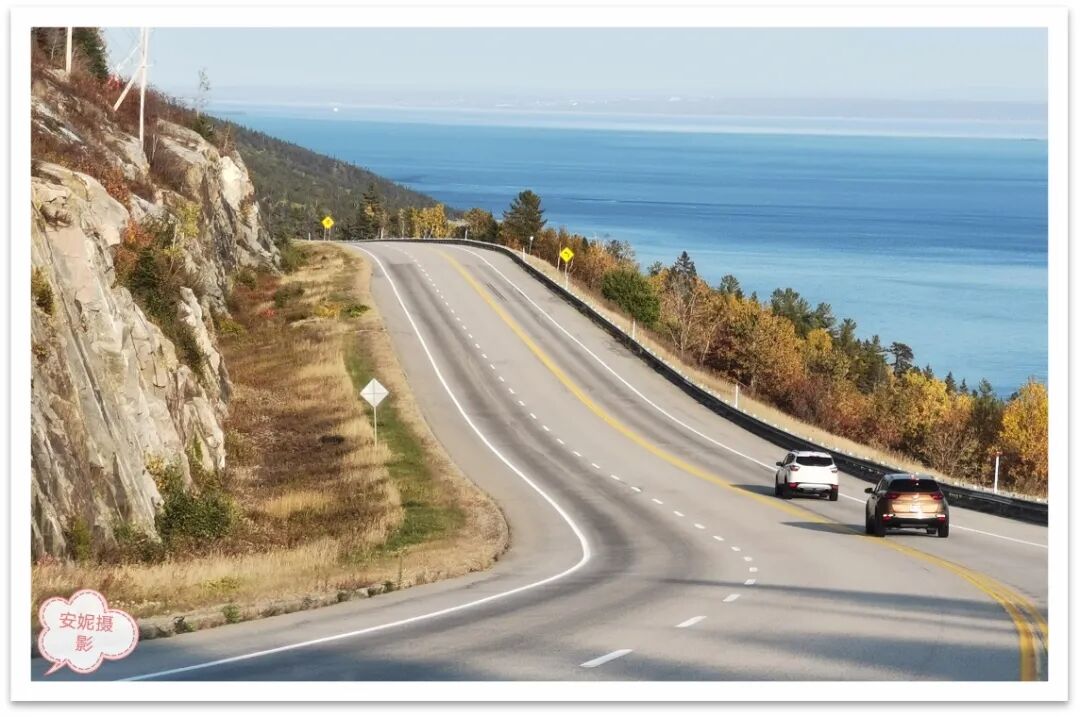 当你的眼睛刚被满山遍野的枫叶所占满正沉浸在无限“枫”情时,忽然宽广壮阔、一望无际的圣劳伦斯河又冒出在你的眼前,顿时让你有一种要一头扎进海里的感觉。这一路心情跌宕起伏,眼睛目不睱接,思绪感慨万千,无限风景,美不胜收,永生难忘。