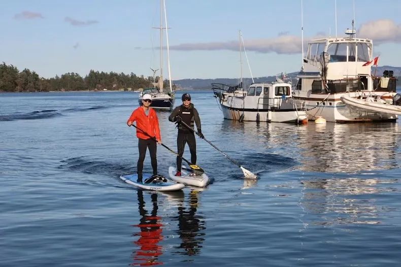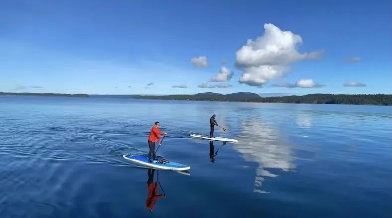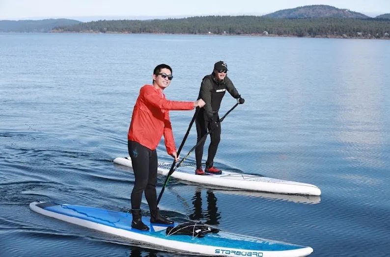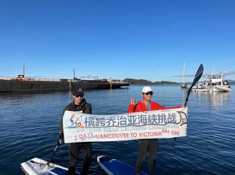 从温哥华到温哥华岛,全程用时2天14小时, Jerry和Ryan创造了两项记录:华人第一人SUP(Stand-Up Paddling,站立划水板或滑水桨板)横跨乔治亚海峡,以及世界上最短时间SUP横跨乔治亚海峡!
