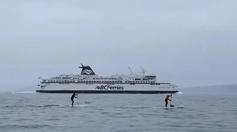 途中出现感人的一幕 – 一艘BC Ferries的轮船经过,特意降低速度,将轮船造成的浪降到最低,而船上的人纷纷跑到船舷观看。