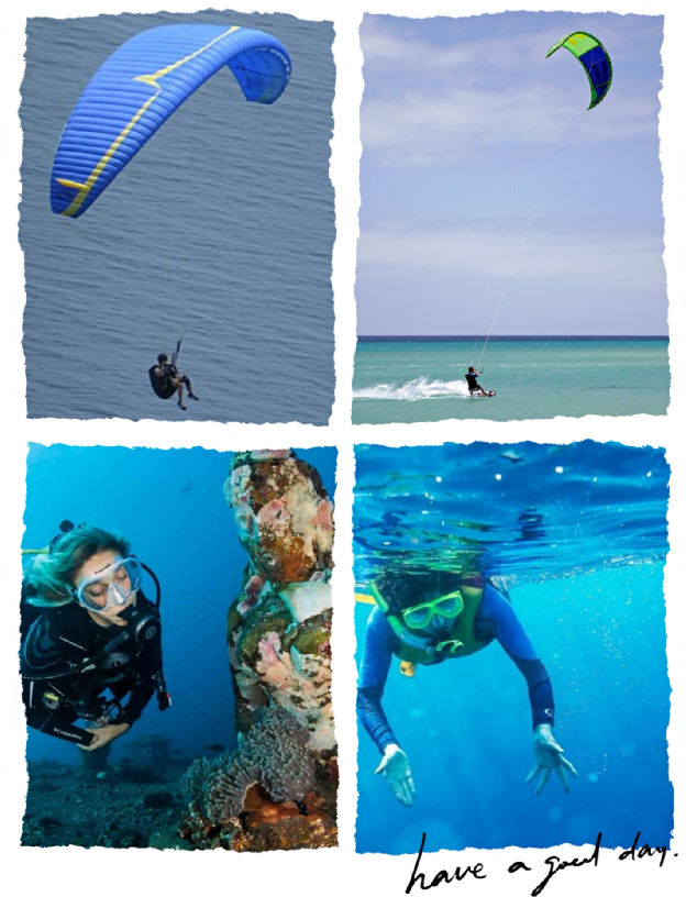 浮潜、潜水、钓鱼、皮划艇、摩托艇、风筝冲浪、滑翔伞……如此美丽平静的海水,各种水上运动嗨起来。