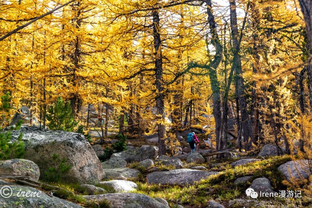 到此我们已经在最好的天气、最盛的金松、走完了最美的路线。傍晚开始下起了大雨,一直不停下到第二天上午,小小的帐篷屹立在凄风苦雨中,考验设备啊,在狂风大作,雨声滴答中睡得如此香甜。