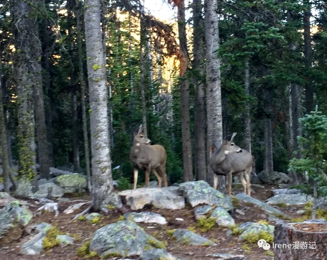 穿过夕照金松林回到了营地,小鹿就像我们邻居一样,好奇的看着人类