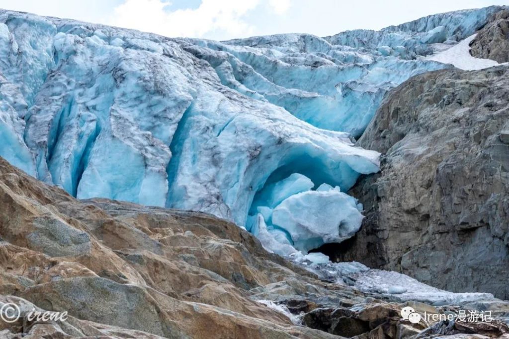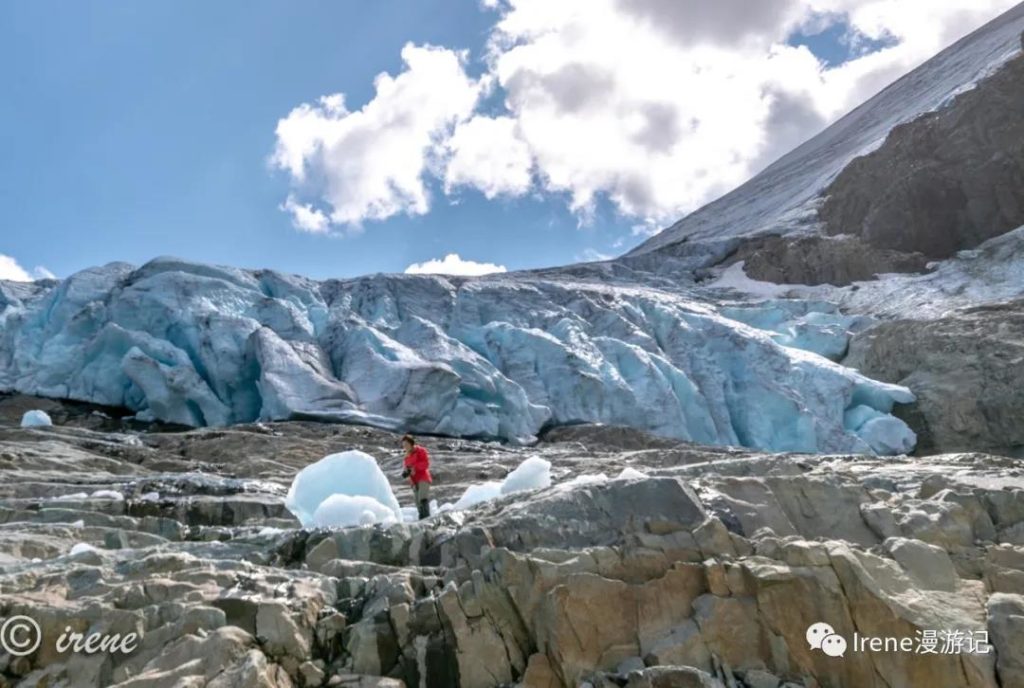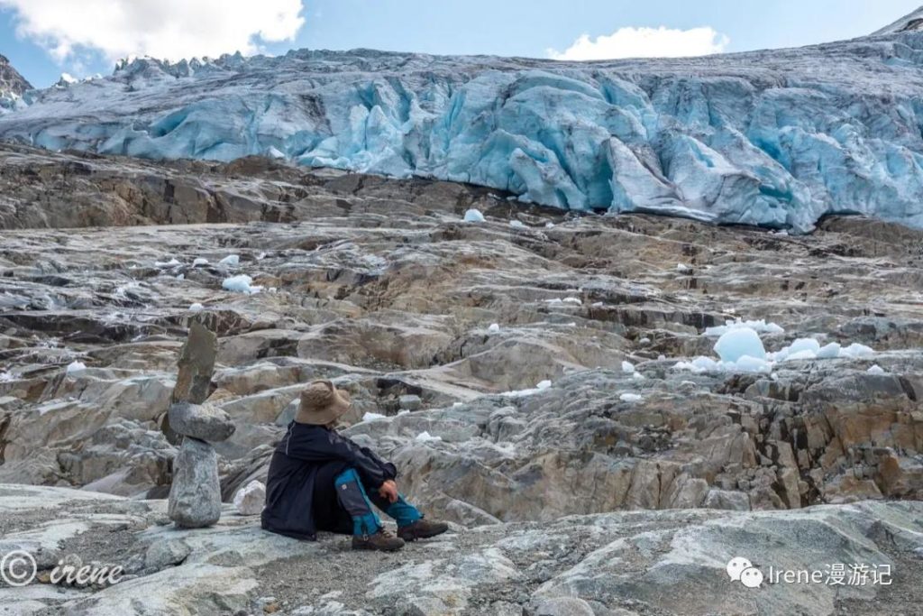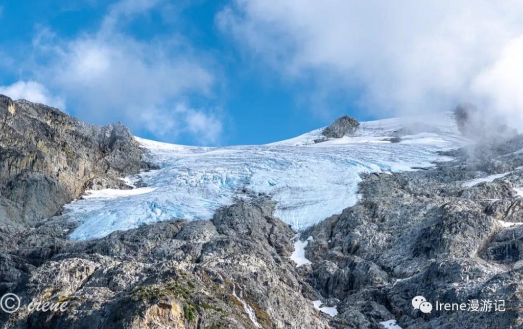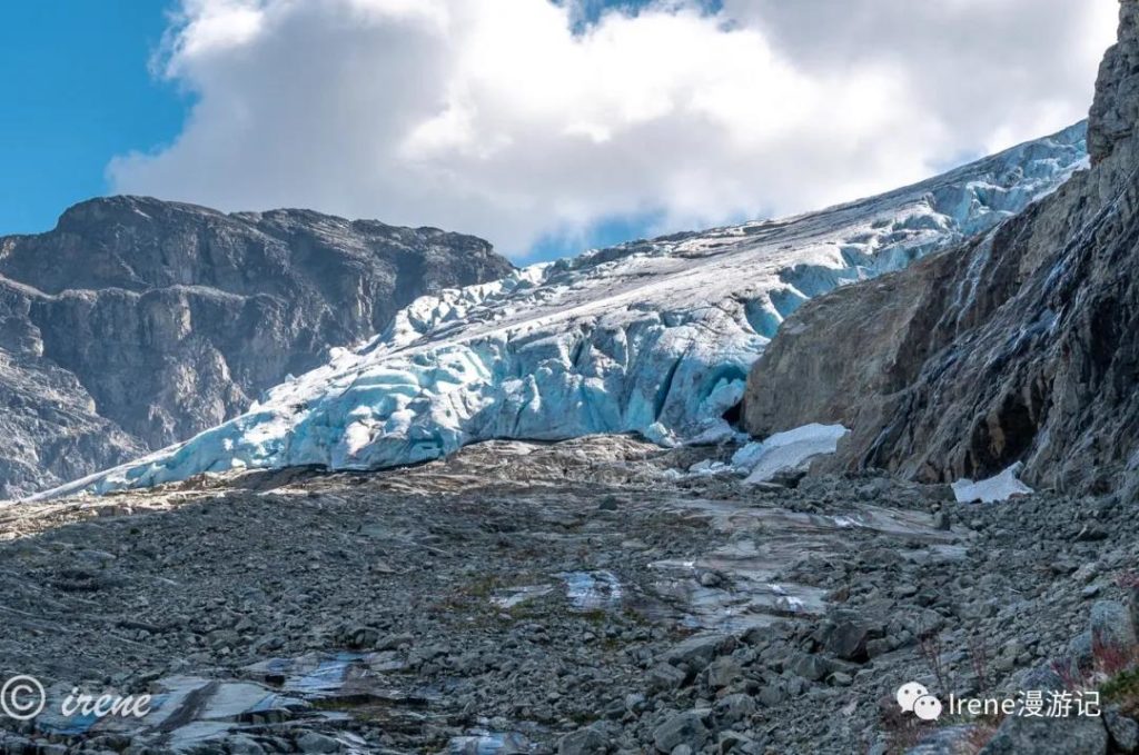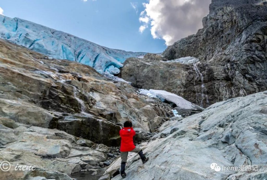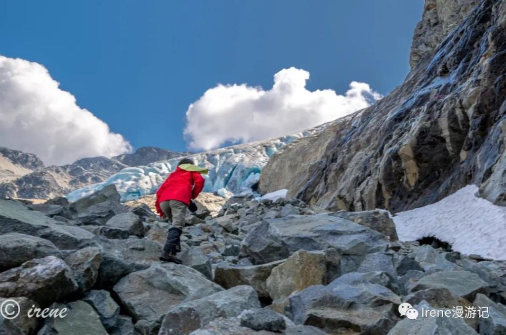 吃完早餐爬上陡坡想到冰川上去看看,一路上好多折返的,我们也边走边怀疑自己能不能上去
