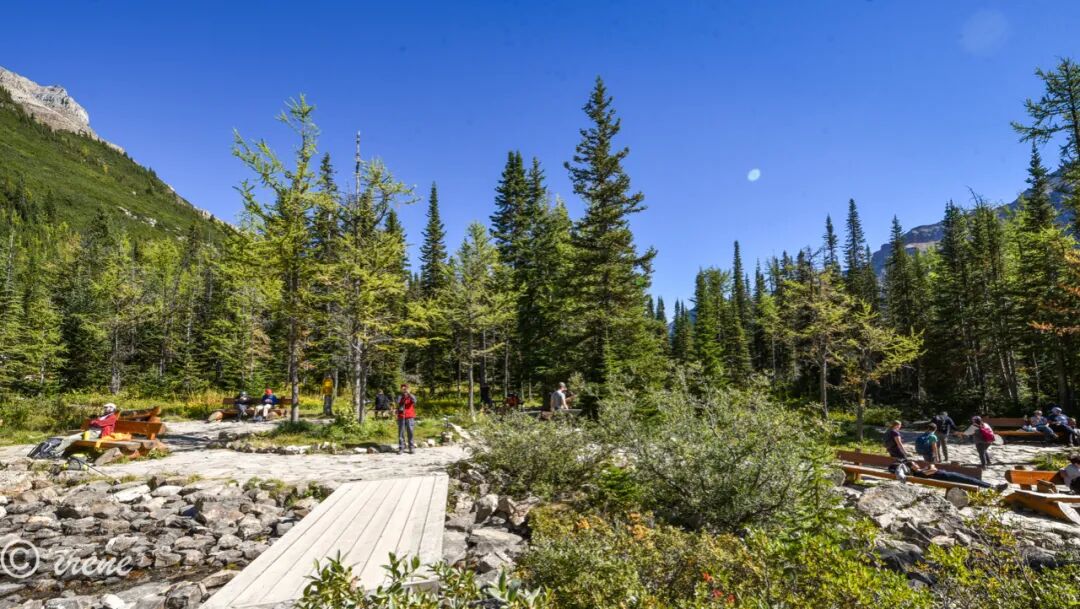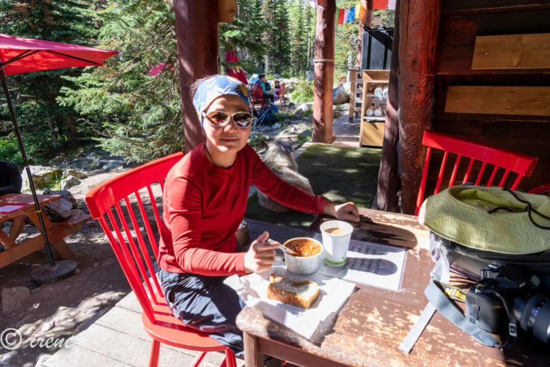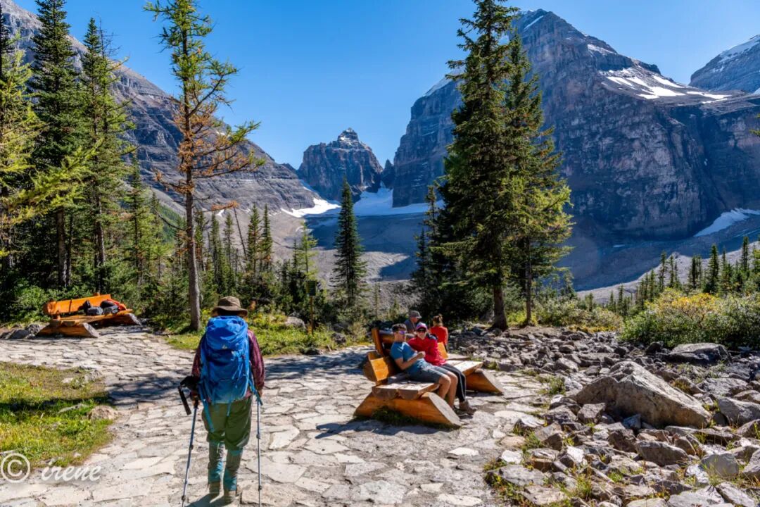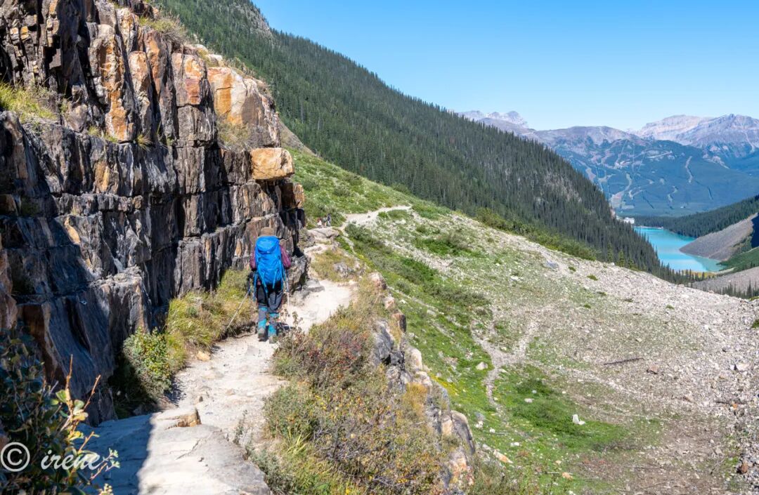 这条步道连接两个著名的高山茶馆“六冰川平坝茶馆”(PLAIN OF SIX GLACIERS TEA HOUSE)和艾格尼丝湖茶馆(LAKE AGNES TEA HOUSE),计划是爬上第一个茶馆吃午餐,再走到第二个茶馆晚餐,午餐倒是吃上了,可惜晚餐我们到的时候人家已经停止营业了。不过这一路的逍遥和美景已经赚翻了。这条线路是典型的欧式爬山,一路有山屋提供补给,道路也维护得很好,比较舒适休闲,老少皆宜啊。